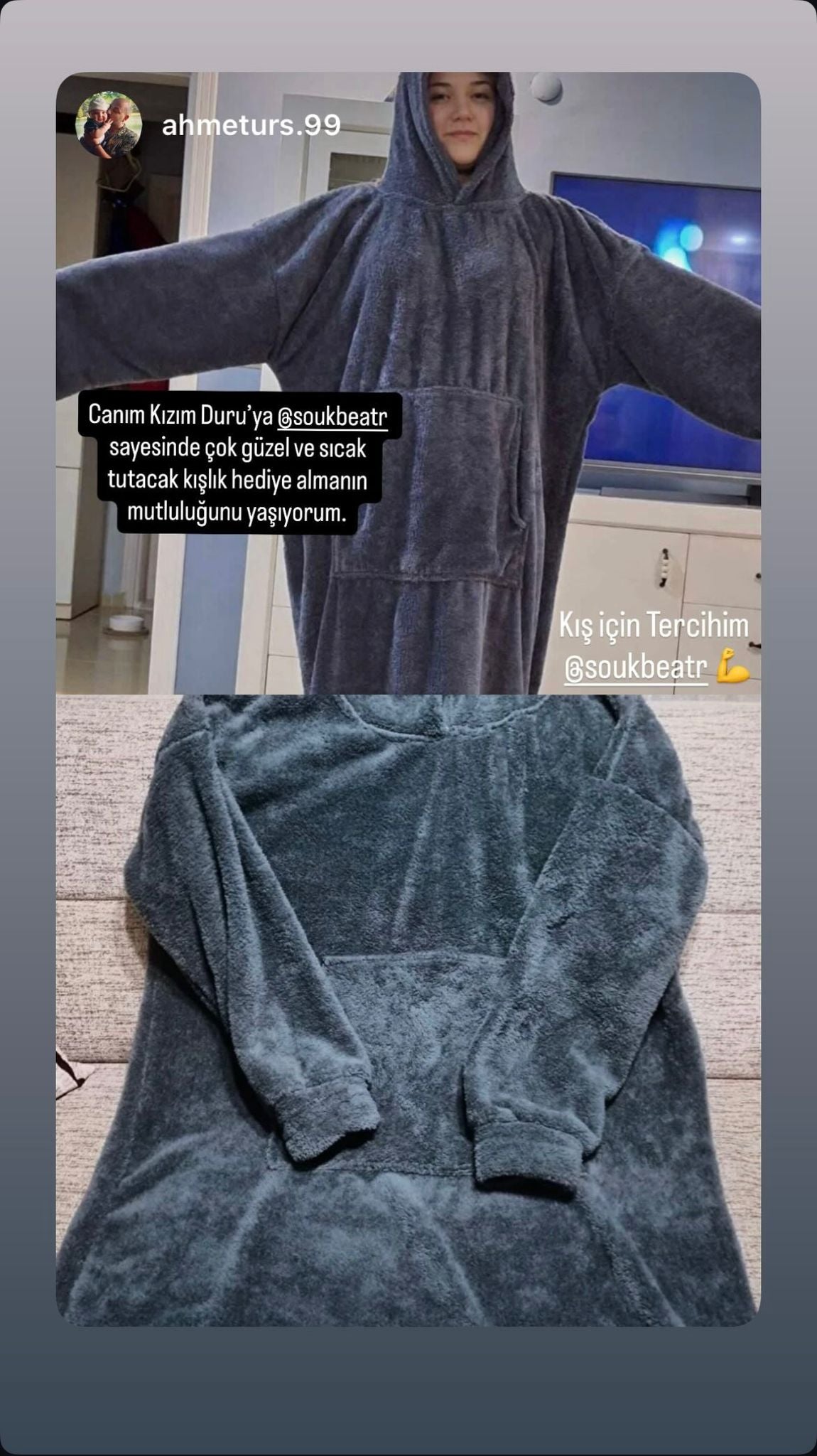 Souk Bea giyilebilir battaniye, seni yumuşacık dokusuyla sarar,tüm yorgunluğunu alır, bedenini ve ruhunu dinlendirir. 🧸✨